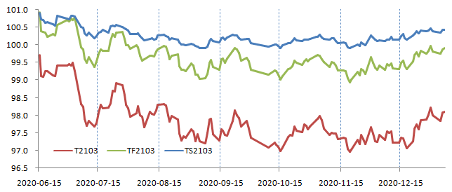 操作上,本月国债期货可保持做多思路进行操作。T2103目标位可关注99.2,TF2103目标位可关注100.8,TS2103目标位可关注100.9。套利策略建议关注5年期与10年期价差。根据以往规律,在利率下行期,短端国债期货与长端国债期货的价差通常会收窄。当前可进行空2年期国债期货多10年期国债期货的套利策略,目标位1.5。