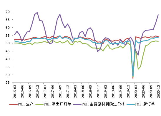 2. 工业生产持续发展,高技术制造业和装备制造业发展迅速。12月份,规模以上工业增加值同比增长7.3%,增速加快0.3个百分点,与制造业PMI维持高景气等观察相一致。2020年全年规模以上工业增加值较上年增长2.8%。分三大门类看,采矿业增速持续增长,同比增长4.9%,较11月份加快2.9个百分点,主要是受寒冷天气所影响,居民用电大幅增加,带动采矿(煤炭、天然气)增加值扩大;制造业增长仍处于较高水平,增长7.7%,增速与上月持平,其中,高技术制造业和装备制造业分别比上年增7.1%、6.6%,发展迅速,新能源汽车产量更是同比增加17.3%,高科技产业链将是未来发展的重点。整体来看,伴随着海内外需求端的逐渐恢复,叠加我国的出口高景气,促进生产动力持续上升,从而形成良好循环。春节将至,寒冷气温仍将持续,居民用电需求将继续扩大,并且随着经济的持续复苏与发展,制造业增速将继续加快,高科技制造业占比比重将越来越大。
