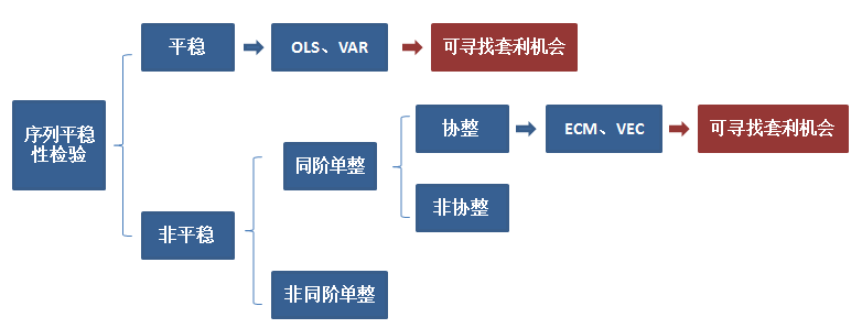 任何建模的前提都是数据是平稳的,否则会出现过拟合,影响预测效果。而价格序列普遍都是非平稳的,所以不能直接用最小二乘法回归(OLS)来描述两个资产价格的关系。但如果两个价格之间具有长期均衡的特征,即他们的价差是平稳的,那他们就具有协整关系,就可以通过建立ECM模型来寻找套利机会。