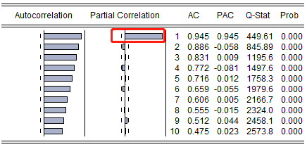 考虑加入一阶滞后项,LNIF = -0.0018+ 0.3363*LNOIL - 0.2956*LNOIL(-1) + 0.9565*LNIF(-1)(式2)。残差的自相关性消失,因此初步认为LNIF和LNOIL有长期均衡关系。