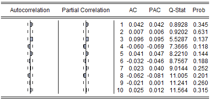 图3 协整回归式的残差自相关分析