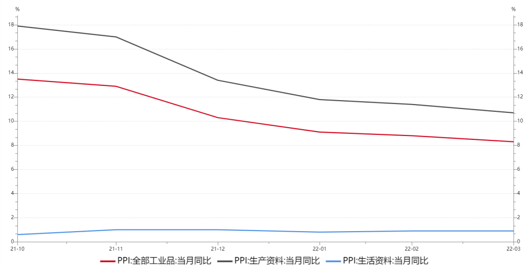2. 3月PPI同比8.3%,前值8.8%,预期7.9%;环比1.1%,前值0.6%。