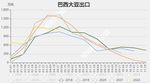首先,从豆类市场来看。受拉尼娜气候的影响,巴西、阿根廷以及巴拉圭都出现减产的情况。那么虽然目前仍是南美出口的旺季,但是总体的出口量较往年相比仍偏低。巴西全国谷物出口商协会(ANEC)称,2022年6月份巴西大豆出口量可能达到941万吨,比5月份的出口减少85.1万吨,比去年同期减少71.8万吨或7.1%。阿根廷方面,阿根廷农业部发布的报告显示,阿根廷农户的大豆销售步伐继续落后上年同期。截至6月1日,阿根廷农户已经预售1,734万吨2021/22年度大豆,比一周前高出77.1万吨,低于去年同期的2,092万吨。造成阿根廷销售偏慢的除了减产的因素外,还有汇率的影响。尽管国际价格高企,阿根廷农户仍然不愿出售大豆,将大豆作为抵御比索走软的硬通货。由于阿根廷农户销售大豆获得的是比索收入,因此比索贬值意味着持有大豆要比持有比索更划算。
