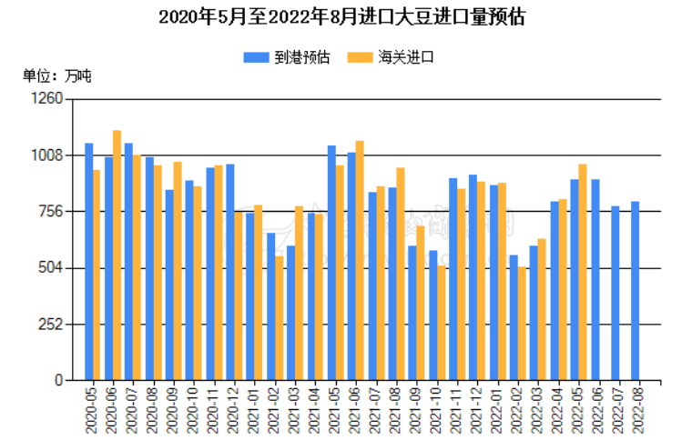 从进口的情况来看,受压榨利润亏损的影响,油厂进口的热情也有所回落。目前,6月船期大豆进口预估为700万吨,低于早先预估的780万吨。7月和8月船期大豆进口预估同样调低。其中,7月船期大豆进口预估下调50万吨,至710万吨;8月船期大豆进口预估下调30万吨,至700万吨。国内7月、8月船期的采购任务分别完成40%、35%,低于去年同期的70%、80%。进口豆数量有限,也限制了国内豆类的供应量,对豆油价格有所支撑。