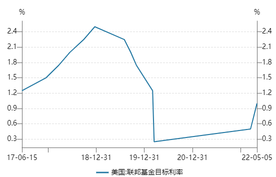 继2022年3月份,美联储开启第一轮升息25个基点,美联储5月议息会议将美国联邦基金利率再度上调50个基点至0.75%至1%的水平,这是美联储自2000年以来最大幅度的加息,即单次会议加息达到50个基点。