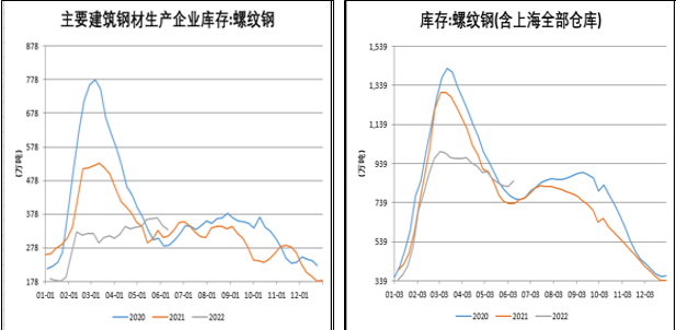 据统计数据显示,截止6月10日,全国35个主要城市螺纹钢库存量为851.05万吨,去年同期库存量为733.75万吨,同比增加117.3万吨。6月10日,137家样本钢厂中螺纹钢厂内库存为332.8万吨,去年同期为313.92万吨,同比增加18.88万吨。