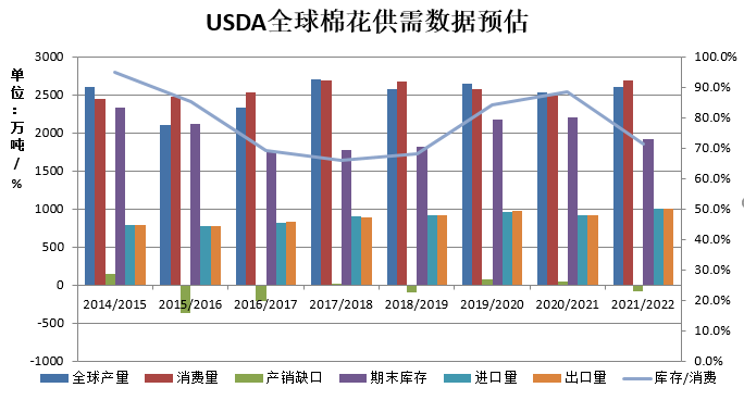 USDA报告:2022/23年度全球棉花供应仍较高,且消费连续三次下调美国农业部发布了6月全球棉花供需报告:6月全球棉花产量预测值较上个月上调4.5万吨至2640.3万吨,在近半年的供需报告中,USDA连续三次下调对全球棉花消费的预期,全球消费调减9.8万吨至2646.2万吨。全球期末库存下调1万吨至1802.2万吨,2022/23年度全球棉花需求、库存下调、产量调增,且产量仍高于近三年同期水平,全球棉花供应仍显充裕,本报告数据利空棉市。