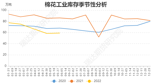 总体上,供应方面,截至5月底棉花商业库存为416.28万吨,环比减少49.9万吨,同比增加58.49万吨。目前商业库存仍处于近五年最高值,且5月的同比增幅数据仍然呈现上升的趋势,棉花供应仍显宽松局面。需求方面,在原料成本高企的背景下,新增订单匮乏,产成品库存较高,下游需求旺季不旺态势仍未改善,或已然处于消费淡季。总体上,国际棉花价格回调,加之国内棉市供应仍宽松,需求订单不足的情况下,郑棉期价仍跌势仍将延续,底部尚未形成。