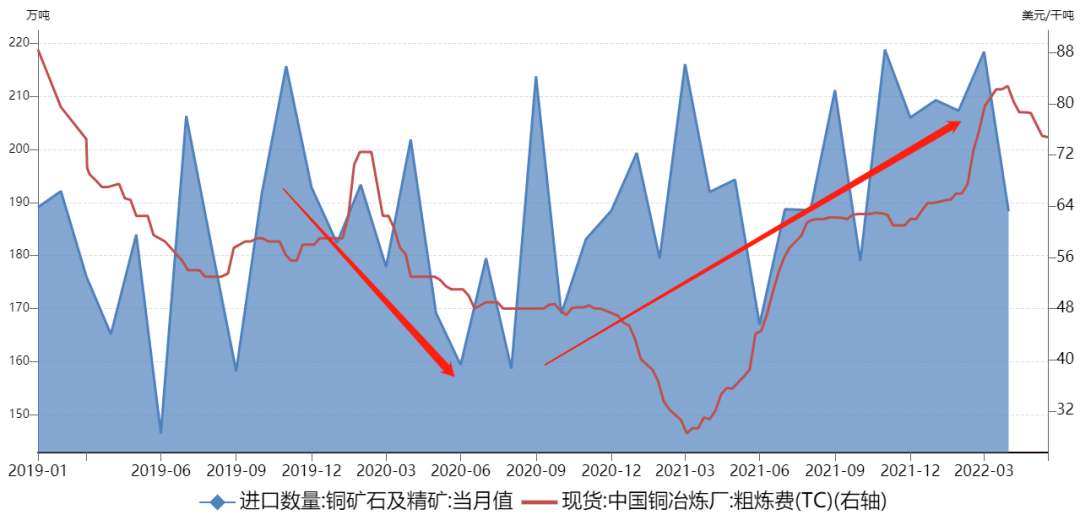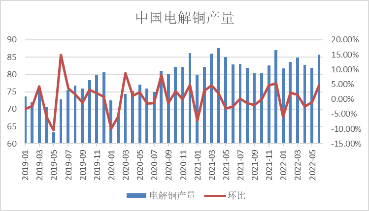 2022年上半年铜价呈现上行回落走势,其主要因全球通货膨胀开始抬头,以及俄乌冲突爆发,叠加铜市库存较往年同期大幅下降,市场供应趋紧,支撑铜价逐渐上行。不过4月份以来,由于美联储加息步伐加快,并且中国疫情导致经济放缓,铜价承压大幅下跌。铜矿供应增长明显,加工费TC上升。据海关总署数据,中国5月铜矿砂及其精矿进口218.9万吨,环比增长16.19%,同比增长0.1%,上半年中国铜矿进口量呈现震荡上升趋势;1-5月铜矿砂及其精矿累计进口1042.2万吨,同比增加6.1%,较1-4月的增加1.5个百分点。国内铜矿供应紧张局面已经较此前得到明显改善,随着南美疫情影响减弱,加之铜价大幅上涨,去年下半年以来国内铜矿进口量延续增长趋势。今年上半年,国内铜矿港口库存以及铜矿加工费TC进一步上升,截至7月8日,铜矿加工费TC为73.1美元/吨,已经恢复至2019年一季度的水平。显示目前铜矿供应得到明显改善。国内电解铜产量爬升趋势。今年上半年由于原料供应较去年改善,且硫酸价格表现强势,高利润驱动下冶炼厂生产积极性较强。据SMM数据,6月中国电解铜产量为85.70万吨,环比上升4.6%,同比上升3.3%。从7月冶炼厂排产计划来看,整体依旧处于检修旺季,金川,南国进入检修对产量影响较大,赤峰也有冶炼厂提前检修降低市场产量预期,其余检修对产量影响均不算太大;但部分大厂从检修中恢复产量也将同步恢复下整体产量将维持高位。预计7月国内电解铜产量为85.84万吨,环比上升0.2%,同比增长3.4%。后期进入8-9月份,3个主要新扩建计划有望按部就班进展下国内电解铜产量有望稳步攀升。终端行业需求恢复缓慢。二季度国内出现疫情并在之后得到控制,经济活动逐渐改善,不过终端行业虽然环比恢复但是同比仍有较大下降。具体数据来看,房地产行业,2022年5月房地产开发投资完成额12979亿元,环比增加13.96%,同比下降7.8%;5月商品房销售面积10970.23万平方米,环比增加25.77%,同比下降31.77%。家电行业,2022年5月,家用洗衣机产量679.5万台,同比下降3.3%;空调产量2182.9万台,同比增加0.1%;家用电冰箱产量667万台,同比下降11.5%。汽车行业,5月汽车产销量192.6万辆和186.2万辆,环比增长59.7%和57.6%,同比下降5.7%和12.6%。整体来看,目前终端行业随着疫情控制正在呈现逐步恢复态势,不过并未出现强劲的反弹,一方面政策的刺激作用尚未完全释放,另一方面市场信心的修复仍需要时间,使得终端需求恢复表现较为缓慢。铜显性库存进入累库周期。截至2022年7月8日,全球铜显性库存报265844吨,较上月末增加23583吨。其中COMEX铜库存69973短吨,较上月末减少10576短吨,过去一年呈现小幅增长趋势;LME铜库存133025吨,较上月末增加15275吨,6月下旬以来进入增库周期;上期所铜库存69353吨,较上月末增加17900吨,6月库存自低位呈现回升态势。整体来看,全球铜显性库存处在历史较低水平,不过近期开始呈现回升趋势,显示供应紧张的局面正在边际改善。全球经济衰退担忧,美联储激进加息。6月份,世行在《全球经济展望》报告称,俄乌冲突加剧了疫情对全球经济的影响,2022年全球经济增长预期下调至2.9%。在此之前,世行已在4月份将今年全球经济增长预期从1月份公布的4.1%下调至3.2%。6月份,美国ISM制造业PMI的新订单指数录得49.2,环比下降5.9;欧元区制造业PMI的新订单指数录得45.2,为2020年5月以来新低。欧美6月PMI新订单分项均跌至萎缩区间,显示未来需求呈现放缓趋势。全球经济下行压力增大,市场的担忧情绪不断升温。今年3月美联储开启新一轮的加息周期,以此来控制在史无前例的货币宽松政策,叠加全球供应短缺之后,导致通胀的大幅攀升。美联储在3月加息25个基点,在5月加息50个基点,在6月加息75个基点。其中6月份的加息幅度为1994年以来力度最大的一次。美联储激进加息同样也受到经济数据表现较好的支持,数据显示,美国6月非农就业新增37.2万人,远远超过预期的26.8万人,连续第三次超出预期,并且是2月以来超出预期最大一次。因此,7月美联储继续激进加息75基点的可能性已十之八九,这将进一步提振美元的吸引力,推动美元指数上行。综上所述,铜矿供应增长明显,国内铜矿加工费TC得到明显回升,叠加硫酸价格走高,国内炼厂生产积极性较高,当前虽然处于检修旺季,不过炼厂检修产能复较快,环比产量小幅上升,并且三季度还有新增产能投放,预计产量将稳步攀升。需求方面,终端行业恢复表现较为缓慢,整体来看虽然环比呈现回升态势,但是同比依然有较明显降幅。6月份以来全球铜显性库存呈现上升趋势,显示供应紧张局面正在边际改善。此外今年全球经济下行压力较大,叠加美联储预计将继续激进加息,市场担忧情绪较重,且推动美元指数大幅上行。因此,预计后市铜价还将面临较大压力。
