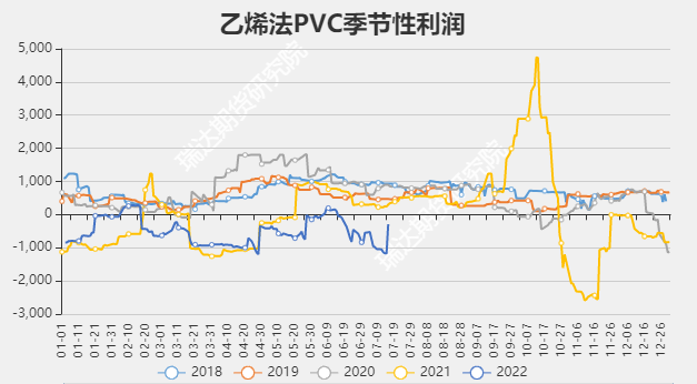 目前,国内PVC的生产企业均处于亏损状态。数据显示:截至7月15日,受原油大幅回落的影响,乙烯法PVC的生产利润亏损明显收窄,报-291.56元。而电石法企业PVC单吨利润亏损则明显扩大。以华东常州电石法SG-5型PVC现货主流价为例,国内电石法PVC的生产利润亏损已扩大至-1734元。目前国内电石的价格走势相对平稳,截至7月15日,西北电石的价格仍维持在3849元,虽然低于去年同期水平,但也明显高于其余年份。与此同时,国内PVC受需求低迷的影响,价格自6月中旬的8856元大幅回落至6005元,短短一个半月下跌了2851元,跌幅32.19%。已回到2020年5月份的低位水平。原料价格平稳,但市场价格回落,PVC生产企业的利润持续亏损,预计后期生产企业或采取减产降负的措施来维持价格。