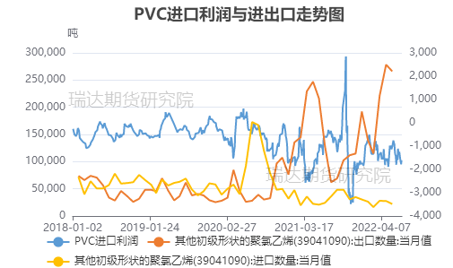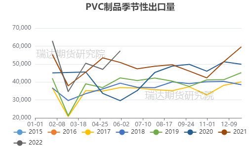 7月,PVC市场仍处于传统检修季,国内仍有较多装置进行常态化检修。数据显示:2022年7月1日--7月15日, 国内PVC装置检修共有9套,涉及产能252万吨。7月份下半个月,仍有12套生产装置计划检修,涉及产能约341万吨。较上半个月增加了89万吨,此外,从表中还可以看到,上半月检修的装置多为小修,时间较短,检修损失量也较少,而下半个月装置检修的时间较长,检修损失量也较大。预计7月下半个月,PVC的供应较上半个月有所减少。进入2022年,国内PVC的出口量继续保持平稳增长态势,且增速也较快。数据显示:2022年5月,国内PVC出口量为26.60万吨,环比下降了1.23万吨,降幅4.64%,同比则上升了4.98万吨,增幅23.03%。2022年1--5月,国内出口PVC101.89万吨,较去年同期增加了4.62万吨,增幅4.75%。从图中出口量图中可以看到,目前PVC的出口量处于历史高位。此外,从进口利润表中我们也可以看到,PVC的出口量与进口利润呈较为明显的负相关关系。而6月份到7月份,我国PVC的进口利润有所回落,目前仍处于-1700元左右,照此推算,预计6月份PVC的出口量仍将维持高位。进入2022年后,我国PVC制品的出口量继续平稳增长。数据显示2022年5月,我国共出口PVC制品 53.39万吨,较4月份上升了4.69万吨,升幅9.63%,与去年同期相比,也上升了3.67万吨,增幅7.38%。其中,PVC铺地制品出口更是年年平稳增长,数据显示:2022年5月,国内PVC铺地制品的出口量报47.31万吨,较4月份上升了3.58万吨,增幅8.18%,与去年同期相比,也增加了3.08万吨,增幅6.95%。从图中可以看到,2022年,国内PVC制品出口继续保持平稳增长势头,目前处于历史高位区域,而今年铺地制品出口的增速虽然有所放缓,但也仍处于历年来的高位区域。预计下半年,国内PVC制品的出口量仍有望保持平稳增长。综上所述,个人认为,7月下旬,PVC的市场供应将有所减少,而出口量及下游制品出口量有望继续上升。国内需求虽然仍较弱,但继续低迷的可能性较小,已处于转折的边缘。后期随着疫情影响减少,下游需求有望逐渐恢复。此外,电石价格运行相对平稳,预计也将对PVC形成一定的支撑。后期PVC有望走出震荡筑底,重心上移的格局。