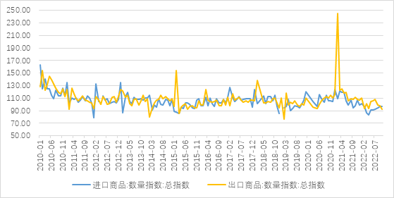 观点:我国11月份进出口降幅再度走阔,且均弱于市场预期。内外需不足产生的负面影响继续扩大,叠加疫情再度反复以及去年同期基数的走高,外贸数据大幅回落,预计接下来出口同比增速仍将低位运行。进口延续价涨量跌的特征,当前我国经济内生需求依然较为疲弱,因而未来大宗商品价格回落或将拖累进口增速。