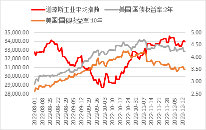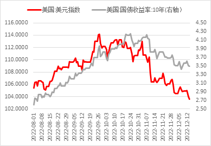 总的来看尽管11月CPI数据显示通胀再次下滑,但美联储主席鲍威尔在12月会议上并未如市场预期提前放鸽。相反的是鲍威尔在本次会议发言总体基调偏鹰,重申劳动力市场供需平衡的重要性以及薪资增速的问题。同时他也提及短期内金融环境受多方面因素影响或有所波动,但美联储为抑制通胀将更专注于政策对其长远的影响。