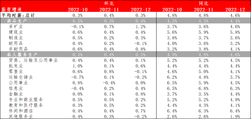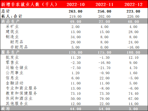美国12月新增非农就业人数录得22.3万人,高于预期的20.2万人及前值的25.6万人,但为2020年12月以来最低增幅。本次新增非农就业人数中服务业就业人员仍为主力贡献,其中教育和保健服务服务业新增7.4万人(前值7.3万人),休闲和酒店业新增6.7万人(前值7.9万人),同时批发及零售业受年末假期影响就业人数也有所上升。