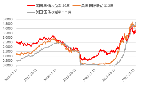 在12月非农就业数据公布后,薪资增速的放缓及ISM非制造业指数超预期下降的数据使市场认为美联储未来加息压力减小,整体利好美联储在后继会议上适当放鸽。美国三大股指在鸽派预期下于同日集体收涨,即便如此,当前三大股指仍处于一年来低位附近,整体市场情绪相对低迷。美债方面10年期国债收益率在数据公布后一度下跌16个基点至3.56%附近,两年期国债收益率则下跌20个基点至4.25%,整体国债收益率倒挂曲线仍在加深,同时三个月与10年期国债收益率倒挂深度盘中一度超过100基点,为80年代以来首次。由此可见,当前市场对美国经济衰退担忧只增不减,同时美国四季度财报季即将到来,市场或担忧美国企业盈利能力在经济低迷的情况下将相对承压,即便四季度美国公司或通过降低或转移成本来使利润超出预期,但在未来财务指引或难以避免悲观情绪。总的来看市场的不确定性或催发更多大幅波动,今年一季度美股在经济承压且企业盈利能力走弱的情况下或持续承压下行。