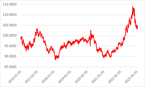 美元指数在近期受市场对美联储政策转向预期增强的情况下持续走弱,同时日本央行放宽收益率曲线管制制度及人民币需求走强等因素也给予了美元一定压力。然而从中线来看,当前美国加息周期在3月前或难以停止,整体利率仍有一定的上行空间,美联储为抑制市场需求及预期或继续向市场放鹰。在美国与非美国家利差尚存甚至将进一步走阔的情况下,美元指数在一季度或有所反弹。