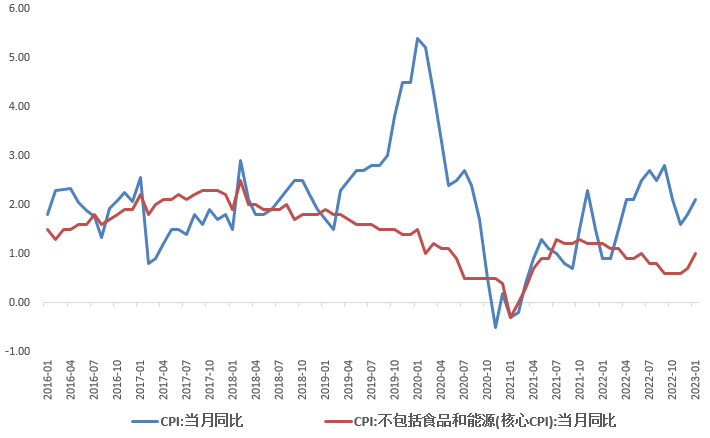 国家统计局2月10日公布的数据显示,1月CPI同比上升2.1%,较上月上升0.3个百分比;环比由平转升,涨幅比上月提高0.8个百分点。扣除食品和能源价格后的核心CPI同比上升1.0%,涨幅较上月上涨0.3%。1月PPI同比下降0.8%,同比降幅扩大0.1个百分点;环比下降-0.4%,降幅收窄0.1个百分点。