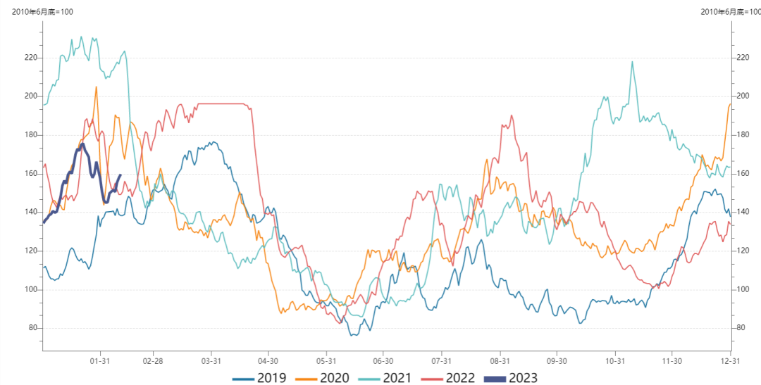 食品中除猪肉外,多数商品价格均有所回升带动整体CPI。受春节等季节性因素影响,需求端大幅回暖,同时疫情对交通运输的影响仍未褪去,加之基数因素,鲜菜、鲜菌、鲜果、薯类和水产品价格分别上涨19.6%、13.8%、9.2%、6.4%和5.5%,涨幅比上月均有扩大,支撑本月食品价格。此外,从寿光蔬菜价格指数也可看到,蔬菜价格在春节释放需求下,迅速上涨。接下来,随着传统食品消费旺季即将到来,加之疫情过峰后居民物流改善,总体需求也将有所好转,鲜菜价格在短期内料延续上涨趋势。
