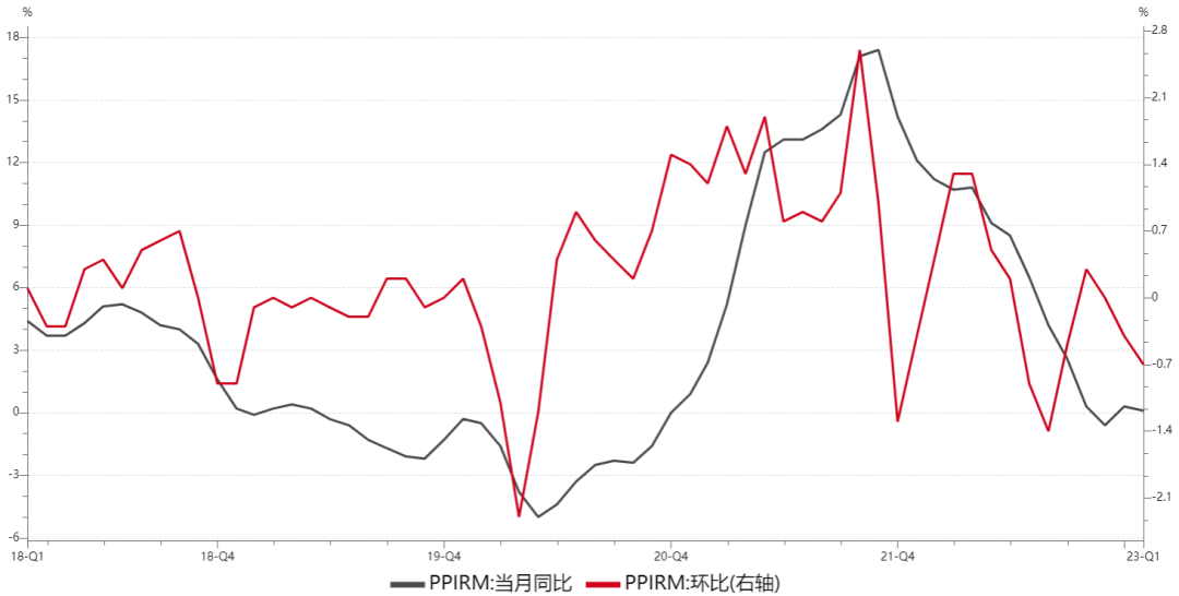 本月PPI同比降幅扩大主要是国际油价下行支撑减弱叠加国内中下游需求走弱拖累,接下来在国际大宗商品价格持续调整且全球经济衰退预期不变的背景下,短期内PPI增速或维持下降趋势,但降幅或有所收窄。