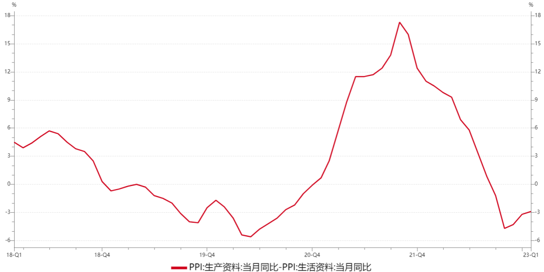 中国1月PPI同比下降0.8%,降幅比上月扩大0.1个百分点;从环比看,1月PPI下降0.4%,降幅比上月收窄0.1个百分点。生产资料价格同比下降1.4%,与上月持平;环比下降0.5%,降幅较上月缩窄0.1个百分点。PPI环比走弱主要受国际原油定价调整以及国内煤炭保供持续发力导致煤炭价格下行等因素影响;国内防疫政策优化落实以及稳地产政策密集出台,稳增长预期向好,国内需求逐步回暖,基建等相关行业如黑色金属冶炼及压延加工业环比有所上行,但下游需求疲弱导致终端价格仍处于低位。生活资料价格同比上涨1.5%,涨幅回落0.3个百分点;环比下降0.3%,降幅扩大0.1个百分点。从细分类别来看,受到猪肉价格走低以及上游原油价格和化纤原料价格走弱拖累,农副产品、食品制造业以及纺织业价格同比和环比均有所回落。可以看出,通胀压力小幅上行但温和可控,PPI同比回落而PPI的环比改善也说明了目前内外需求仍偏弱,下游产品价格短期内PPI或将处于筑底回升过程的波折中。