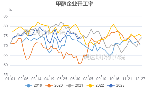 利润方面,煤制甲醇周度平均利润(根据完全成本折算)为-344.71元/吨,较上周-0.43元/吨,环比-0.12%;煤制甲醇周度平均利润(根据现金流成本折算)为55.71元/吨,较上周+107.71元/吨,环比+207.14%。自6月中旬以来,煤炭下游发电需求进入旺季,煤炭日耗量上升,库存天数降低,价格逐步反弹。截至7月初,不同规格的非电煤价格上涨50—100元/吨不等。虽然煤炭需求在高温支撑下有所回升,北方港口去库明显,但南方港口在进口煤炭冲击下,库存仍然上行,且下游整体库存仍偏高,受制于高库存影响,近期煤炭价格略有回落。按照季节性来看,煤炭消费旺季基本会持续至7月下旬,8-9月煤炭将再次进入供需过剩消费淡季。成本逻辑将持续影响甲醇市场,考虑到煤炭供应偏宽松的大背景,待迎峰度夏过后煤价预计重回弱势,届时成本重心或面临下移预期。