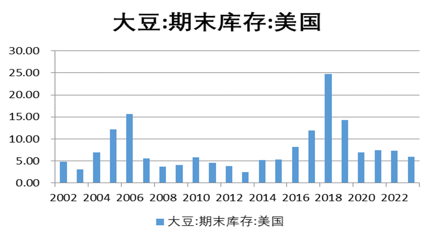 天气条件不确定因素犹存,而另外来说,巴西大豆本身是否供应过剩呢?在上一年度2022/23年度,巴西也是丰产的一年,但是库存仅仅小幅增长到31.45百万吨,而巴西的出口已经增长至95.5百万吨。在产量大幅增长的背景下,但是库存累积量有限,显示巴西的出口表现较好。而这部分出口主要增量体现在中国。从中美贸易战之后,中国进口大豆的来源逐步调整,明显增加了来自巴西的进口量。因此可以说巴西的旧作的供应压力并不大。