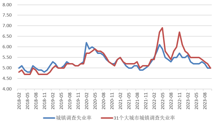 图18 全国城镇调查失业率及31大城市城镇调查失业率