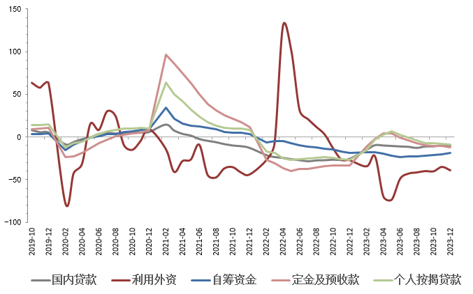 图 14 房地产投资结构弱(资金来源累计同比)