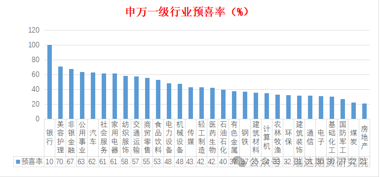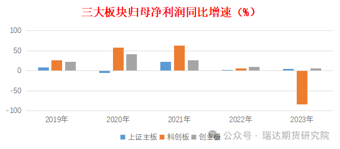 2023年A股上市公司业绩增速边际修复,整体呈现喜忧参半,预喜率相对低迷或表明下行压力仍存。截至2月份,共有2861家上市公司披露了2023年全年业绩预告、业绩快报或年报数据,占全部A股的53.5%,披露率整体与2022年接近。从预告类型来看,2023年全部A股预喜率为41.7%,相较2022年小幅抬升,市场扩容叠加行业景气回暖是业绩增长的核心驱动。此外,扭亏占比13.0%、续盈占比0.6%、略增占比5.2%、预增占比23.7%。申万一级行业板块中,业绩披露率多数位于50%-70%区间,社会服务、纺织服饰、传媒等板块披露率较高,分别是79.7%、60.4%及67.3%。从行业预喜率来看,银行业业绩预喜率达 100%,美容护理行业预喜率为 70.6%;非银金融、公用事业、汽车、社会服务、家用电器、纺织服饰、交通运输、商贸零售、食品饮料等 9 个行业业绩预喜率位于 50%-60%区间;其余 20 个行业业绩预喜率均低于 50%。总体上,业绩预喜率较高的行业集中于金融板块和下游消费板块;业绩预喜率较低的行业集中于地产链板块、上游周期板块和TMT 板块。利润增速上看,社会服务行业的归母净利润增速最高,其次是美容护理行业和纺织服饰行业。食品饮料、非银金融、交通运输、商贸零售、汽车、公用事业、轻工制造等 7 个一级行业的归母净利润增速中位数位于 40%-60%区间。业绩增速中位数较高的行业集中于下游消费板块和金融板块。此外,大小盘业绩明显分化,小盘股业绩不及预期。具体而言,与宏观经济联系密切的沪深300在2023年四季度业绩表现与三季度整体持平,业绩兑现度则明显抬升,表明着大盘股偏低的增长一定程度上符合市场预期,并于四季度定价当中有所体现。相较之下,在四季度市场表现相对活跃的中小盘股(以中证 1000 为代表)从预喜率看或业绩增速看相较 2022年均显著下滑,小盘股在当前宏观环境下存在一定业绩兑现压力。2023年四季度全A累计利润增速为9.3%,中位数法下为15.1%,相较于三季度而言实现15%左右的边际抬升。从三大板块盈利能力上看,科创板累计利润负增明显。截至目前,有308家科创板公司公布了2023年业绩预告。业绩预告类型显示,308家公司中业绩预降公司69家、预亏公司有119家。行业因素来看美国出口管制措施趋于严格,近年下游需求侧受美国出口管制影响对科创板行业盈利增长形成消极影响。创业板整体预喜率相对较高,剔除基数效应后相较于2022年边际抬升,业绩增速维持了一定韧性与景气度,主板盈利增长相较于2022年同比回升,然而业绩同比增速与两年复合增速均低于宏观口径下的GDP 增速,而这一定程度上也印证着当下实体经济中流量修复大于利润修复的格局仍在延续。往后看,市场对于盈利层面预期已相比前期有所下调,并且高增长的领域也相对稀缺,建议更加重视业绩确定性和业绩改善的机会,把握基本面拐点以及修复弹性可能是重要的投资逻辑。同时,节后两会即将召开,在当前经济增长仍存压力的宏观环境下,保增长相关的政策预期大概率上升,政策信号更偏正面,关注后续市场业绩修复机会。许方莉 期货从业资格号F3073708 期货投资咨询从业证书号Z0017638本报告中的信息均来源于公开可获得资料,瑞达期货股份有限公司力求准确可靠,但对这些信息的准确性及完整性不做任何保证,据此投资,责任自负。本报告不构成个人投资建议,客户应考虑本报告中的任何意见或建议是否符合其特定状况。本报告版权仅为我公司所有,未经书面许可,任何机构和个人不得以任何形式翻版、复制和发布。如引用、刊发,需注明出处为瑞达期货股份有限公司研究院,且不得对本报告进行有悖原意的引用、删节和修改。