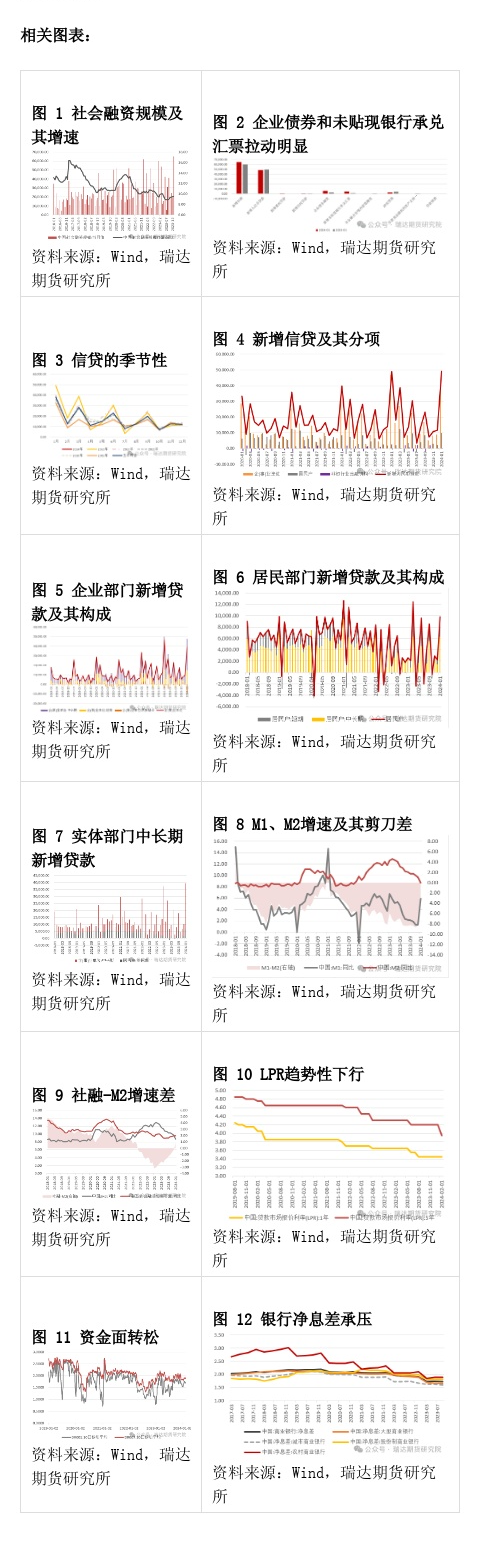 1、1月新增社融超预期,且强于季节性,企业债券和未贴现银行承兑汇票为主要贡献项。1月新增社融6.5万亿元,高于市场预期的均值(6.0万亿元),同比多增5061亿元,同比增速与上月持平为9.5%。同时,单月社融规模创下2002年以来新高,且高于过去六年同期的均值水平5.04万亿元。从分项来看,新增未贴现银行承兑汇票和企业债券同比多增,人民币贷款、政府债券、股票融资同比少增。1月新增未贴现银行承兑汇票5635亿元,同比多增2672亿元;企业债券新增4835亿元,同比多增3282亿元,或主要由于1月信用债收益率大幅下降,企业融资需求上升。1月社融口径新增人民币贷款4.84万亿元,同比减少914亿元;股票融资新增422亿元,同比少增542亿元;新增政府债券规模支撑作用减弱,政府债融资新增2947亿元,同比少增1193亿元,相较于去年同期,在增发国债影响下,今年1月份地方债发行节奏偏慢。2、高基数效应下,1月新增信贷绝对水平不低,居民部门总量和结构均有所改善。1月新增人民币贷款4.92万亿元,与2023年1月份新增规模相当,但远高于2019-2021年同期水平。分部门来看,居民部门贷款新增9801亿元,同比增加7229亿元。其中,短贷新增3528亿元,春节假期消费需求相对强劲,带动居民短贷表现偏强。同时,中长贷新增6272亿元,同比及环比分别多增4041亿元和4810亿元,但数据显示商品房销售仍较低迷,因此其居民端信贷增长的持续性仍需要进一步观察。企业部门方面,整体增长仍偏弱,企业部门贷款新增3.86万亿元,同比减少8200亿元,企业中长贷、短贷、票据同比分别少增1900亿元、少增500亿元、多减5606亿元,或也反映出企业部门预期尚未明显回暖。考虑到1月PMI及通胀数据显示经济动能依然偏弱,社融和信贷景气度的持续性还需关注 2-3 月金融数据来整体判断。3、春节错位效应推动M1同比超预期回升,M1-M2剪刀差边际快速收窄,“社融-M2”同比增速差由负转正。1月M1同比增长5.9%,较上月大幅上升4.6个百分点;M2同比增长8.7%,较上月回落1个百分点。M2同比稳中有降而M1显著走高,带动M1-M2剪刀差快速收敛5.6个百分点至-2.8%。对于M1增速的明显抬升,主要或是由于年初的春节效应影响较大,春节当月存款更多向居民部门的活期存款转化,从而较大程度影响流通中的现金。且由于去年春节比今年较早,2023年1月基数相对偏低,导致今年1月受春节影响较大。同时,万亿增发国债资金落地至项目,以及央行在四季度通过PSL对城中村改造等发放低息贷款,对M1增速也有一定支撑,或表明资金活化程度在本月有明显的提升,后续需继续观察2月份的数据来判断可持续性。此外,“社融-M2”同比增速差为0.8%,为21个月以来首次转正。去年四季度以来,稳经济政策继续落地生效,社融增速持续边际修复,同时M2同比增速延续下滑,带动两者增速差持续收窄,或表明资金空转现象和流动性水平得到一定缓解和改善。但经济动能恢复缓慢和实际利率偏高的背景下,仍需政策端进一步推动融资成本下降,以缓解企业和居民实际融资成本上升压力。4、2月非对称降息,时点未超预期但幅度超预期。其中1年期LPR保持不变,5年期以上大幅下降25个基点,是5年期以上LPR的单次历史最大降幅。从幅度上来看,自2019年LPR改革以来,截至2024年1月,5年期LPR仅下调了65个基点,低于1年期LPR75个基点的累计降幅,5年期以上LPR较1年期LPR下行的空间更大,且考虑到5年期以上LPR是中长期企业贷款和个人住房贷款定价的主要基准利率,不对称降息或更符合当前政策稳信心、稳地产、稳经济的诉求。从时点上来看,尽管作为定价基础的MLF利率本月未进行调整,但MLF利率与LPR调整节奏并非完全一致。2月19日,央行主管的《金融时报》发文表示,“未来宜进一步淡化LPR与MLF利率之间的关系,较之于MLF利率,实体经济主体的融资成本能否下降对于经济增长的作用更为重要”。当前经济回升动能偏缓仍是LPR下调的核心驱动力。同时,银行资金成本也是决定LPR能否调降的重要因素。去年四季度以来,资金面整体维持紧平衡,银行资金成本的上升对报价行下调LPR报价加点的动力形成约束。实际上,从去年下半年主要银行下调存款利率,到今年1月25日央行下调支农支小再贷款、再贴现利率0.25个百分点,同时2月5日人民银行开展全面降准0.5个百分点,均有利于有效缓解商业银行负债端成本压力,为报价行下调LPR扫清障碍,从而进一步为降低企业居民的信贷成本创造有利条件。考虑到外部因素,2023年下半年汇率市场波动较大,央行在价格上的操作较为审慎,使得人民币汇率保持区间稳定。而2024年美联储降息预期正式开启,人民币汇率压力明显减弱,汇率因素或对国内的货币政策宽松空间不再形成掣肘。