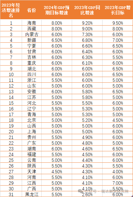 图1:各省GDP目标及2023年GDP增速