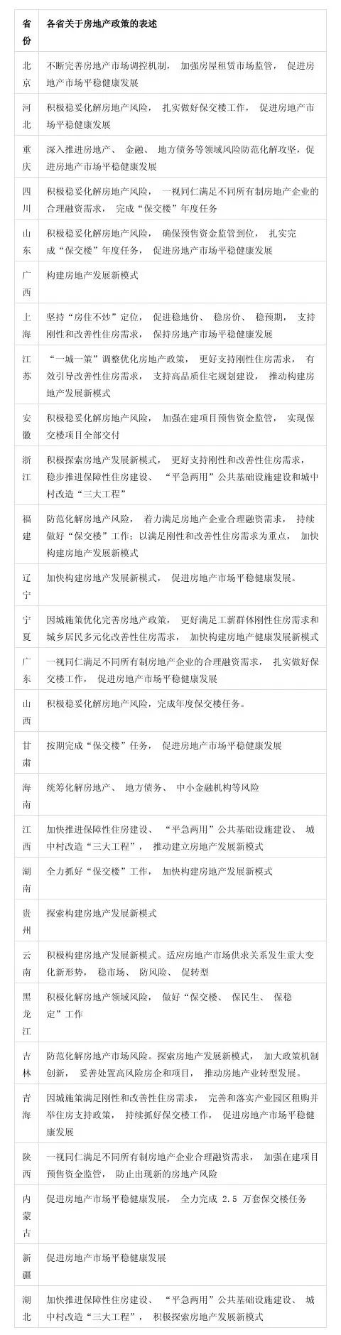 表3:各省关于房地产政策的表述