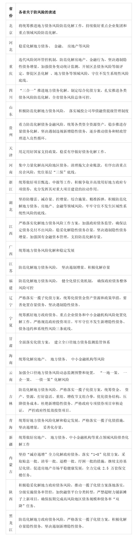表4:各省关于防风险政策的表述