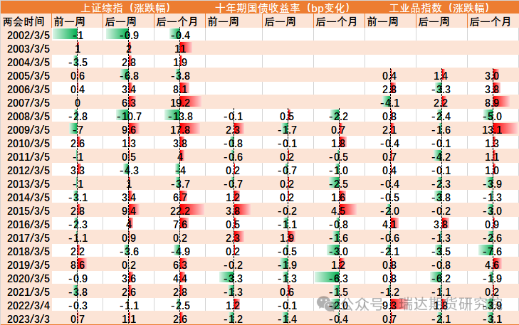 表5:两会前后资产涨跌情况(%)
