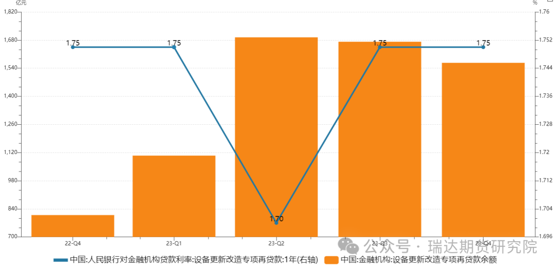 图1: 设备更新改造专项再贷款利率及余额(%,亿元)