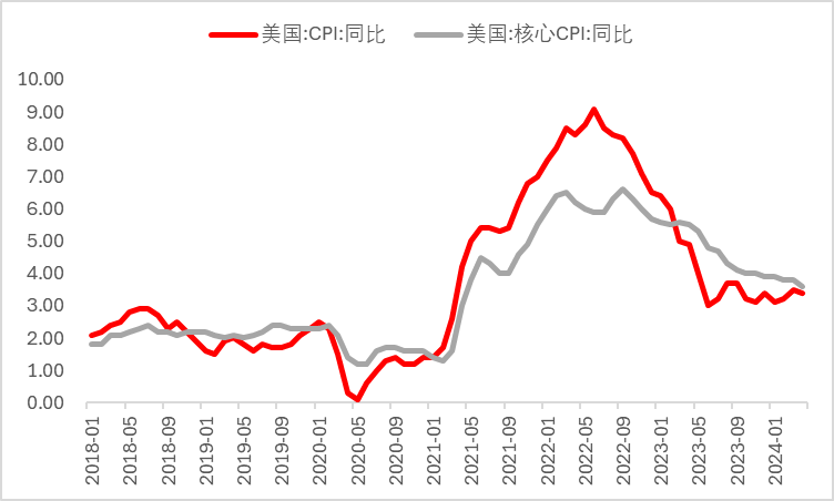 原因2:通胀数据方面,美国4月CPI同比涨幅录得3.4%,与预期持平,并略低于前值3.5%;4月CPI环比上涨0.3%,低于预期及前值对0.4%。核心CPI同比上涨3.6%,持平预期并低于前值3.8%,环比增速则放缓至0.3%,为近半年首次降温,整体通胀水平在新车及二手车等商品价格带动下持续回落,同时住房价格同比增速持续放缓,未来或持续朝市场价格走势收敛。
