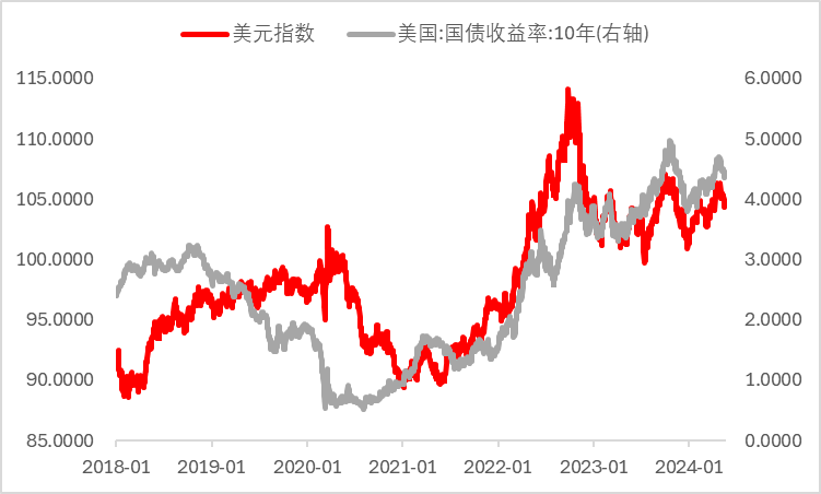 原因3:在非农及CPI数据公布后,市场大幅抬升了年内美联储降息概率的预期,同时年内首次降息时间再次回到9月会议,而整体降息幅度预期则落在50基点左右的水平,一改先前悲观态度。在利率预期回落的情况下,10年期美债收益率以及美元指数同样失去相应支撑开始回落,以美元计价的商品接连得到提振,同时多数工业金属在全球央行降息预期抬高推升制造业复苏概率的情况下大幅上涨。