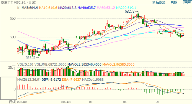 欧佩克联盟延长额外减产措施至下半年的概率升高,北半球夏季出行旺季拉动原油需求,三季度原油市场供需前景趋紧;短期原油期价趋于震荡回升。技术上,SC2407合约期价企稳595-600关口区域,上方测试630一线压力,突破将进一步测试650区域压力。操作策略方面,基于欧佩克减产及北半球需求旺季因素判断,短周期趋于反弹,建议逢低轻仓短多操作,注意控制风险。