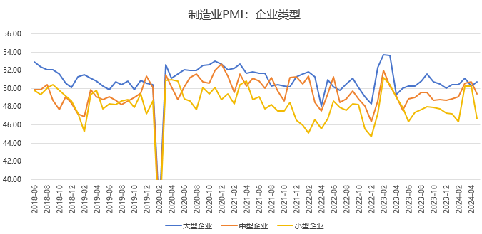 供给端,5月制造业生产指数环比下降2.1至50.8,虽有回落但仍于扩张区间运行,需求不足反过来使得生产意愿回落。按企业规模看,大型企业景气度升高,而中、小企业景气度再度下滑,中小企业承压的处境未发生改变,静待相关政策进一步发力。生产经营活动预期指数较4月回落0.9个百分点至54.3%,总体稳中有升。