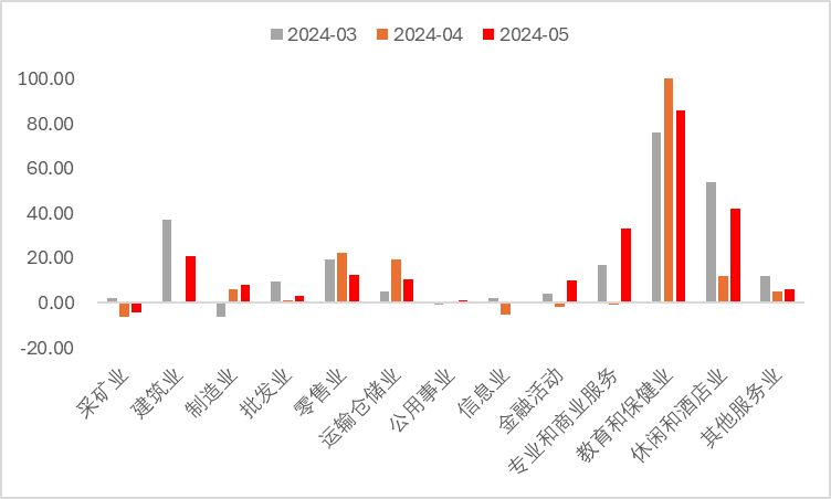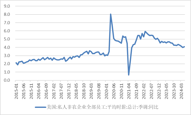 5月美国非农企业员工平均时薪为34.91美元,同比增幅4.1%,均超预期及前值,环比增幅0.4%,较4月份0.23%有所加快;从工时来看,5月份非农企业员工平均周工时为34.3小时,较4月份持平,较去年同期减少0.1小时。细分行业来看,商品生产相关的制造、建筑及批发业薪资增速均有所上升,而服务业中休闲及酒店业和专业商业服务等行业薪资增速保持较高水平,但新增就业人数最多的医疗保健业薪资增速则相较放缓,侧面反映薪资增速在劳动力供需平衡的过程中或逐渐得到抑制。除此之外,从前文中可知,美国兼职劳动者的数量较4月有所增加,而兼职劳工通常对薪酬没有太高议价能力,因此,笔者认为后续时薪的增速或将有所回落。