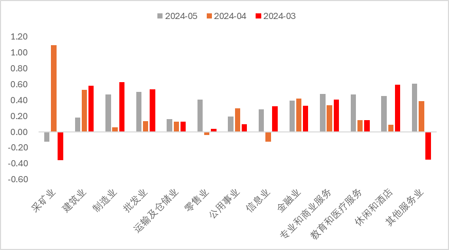 从细项来看,在私人部门中,5月份对新增非农就业人口贡献最大的依旧是教育和保健服务业,尽管较4月少增2万人,但仍达到8.6万人;休闲和酒店业、专业和商业服务以及建筑业新增就业人口均较4月大幅增加,合计增加9.6万人,较4月多增8.5万人。政府方面,5月份地方政府新增就业岗位3.4万人,州政府和联邦政府分别增加5千和4千人。由此可见,服务业就业人口的增加是5月份非农超预期的主要原因,同时,政府部门新增就业在4月份大幅减少后,5月出现大幅反弹也成为非农超预期推动力。