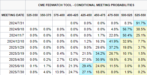 在2024年6月的联邦公开市场委员会(FOMC)会议上,美联储将联邦基金利率目标区间依旧保持在5.25%至5.50%,符合市场预期。除此之外,美联储将继续执行其缩表计划,并将延续当前减持美债和抵押贷款支持证券(MBS)的节奏。