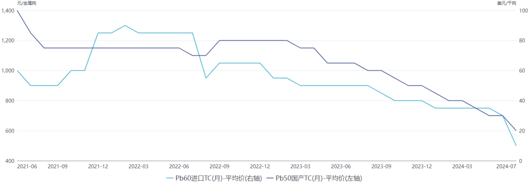 今年以来铅市原料供应遭遇短缺局面,首先由于全球铅矿的开采难度和成本逐渐增加,导致铅矿产量下降,加工费TC更是降至0美元/吨的历史新低;同时废电瓶作为再生铅的主要原料,当前又面临铅蓄电池更换淡季,报废量有限,导致废电瓶供应收紧;其次4月底以来实施废旧回收反向开票政策,增加回收环节的税务负担和运营成本,降低回收商的积极性,也进一步加剧了废电瓶供应紧张状况。