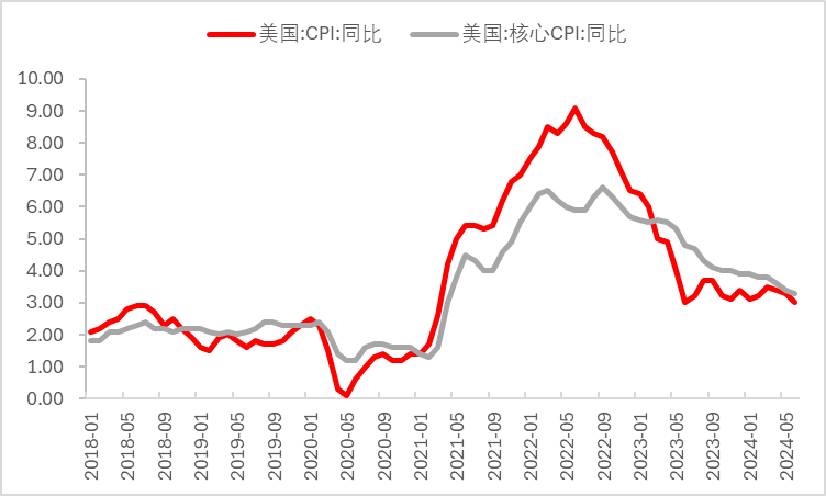1、美国6月CPI同比回落至3.0%,核心CPI同比上涨3.3%,两者均低于预期及前值。