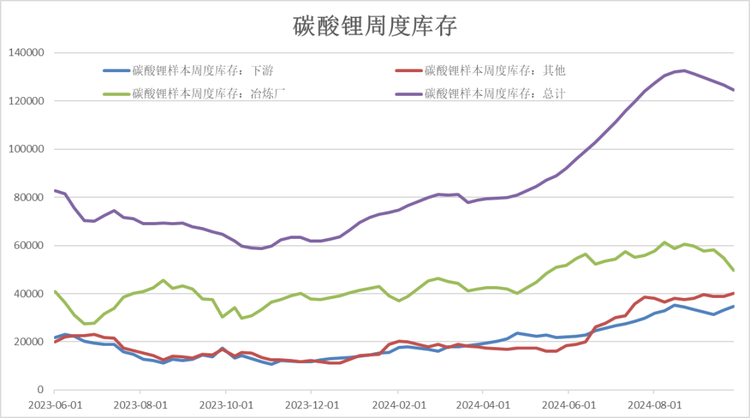 数据:据上海有色SMM调研数据显示,截止2024年9月26日,碳酸锂产业链各环节库存情况分别为,上游冶炼厂49742吨,下游材料加工企业库存34800吨,其他在途及贸易商环节40053吨,库存总计124595吨。数据看点1:从整体趋势上来看,2024年碳酸锂总库存近期呈现加速上涨态势。在2024年8月15日,社会库存总体达到132560吨的高点后,逐步开始去化。随着国家特别国债中支持新能源汽车以旧换新的1500亿逐步落地,国内各大车企9月份成绩单亮眼。虽然在新能源汽车出口方面,由于欧美等国对中国出口进行关税加征,新能源汽车出口略有受限,但在国内宏观政策的推动下,内销逐步发力,从终端消费带动产业链去库存。截止9月26日数据,碳酸锂社会库存拐点已基本确认,9月库存降幅达6%,124595吨。数据看点2:从产业链各环节的细分库存来看,上游冶炼厂去库效应明显,贸易商及下游库存增长,其中下游库存增长明显,生产意愿提升,采买相对积极。随着9月24日一系列货币政策“组合拳”的推行,市场预期及消费信心有大幅提振,碳酸锂价格逐渐企稳回升,前期低价时较低出货意愿的冶炼厂借此涨价时机去库,而下游及经销商已在强预期的推动下主动补库采买,因而出现上游冶炼厂的快速去库,下游积极接货的局面。截止9月26日,上游库存达49742吨,环比降幅达17.8%。下游库存为34800吨,环比涨幅为11.47%。观点分析:综上所述,从以上碳酸锂产业链总库存情况可以看出前期上下游心理价位分歧较大,致使现货市场成交冷清的局面,在行业及货币政策的推动下有所转变,上游挺价意愿随着现货价格回暖而减弱,去库显著。从下游的角度看,在宏观政策的助力下,终端消费市场“金九”旺季表现亮眼,也令“银十”的销售量级看高一线。消费的良好预期带动下游在8-9月降库后重拾补库意愿,采买更为主动积极。对于新能源汽车行业来说,虽然大国之间关税博弈对中国出口量将产生短期影响,但在内销的发力下,将逐渐弥补出口缺口,通过应用端的消费带动产业链继续去库,碳酸锂期价或在强预期下及产业库存拐点逐步确认的背景下,企稳回暖。本报告中的信息均来源于公开可获得资料,瑞达期货股份有限公司力求准确可靠,但对这些信息的准确性及完整性不做任何保证,据此投资,责任自负。本报告不构成个人投资建议,客户应考虑本报告中的任何意见或建议是否符合其特定状况。本报告版权仅为我公司所有,未经书面许可,任何机构和个人不得以任何形式翻版、复制和发布。如引用、刊发,需注明出处为瑞达期货股份有限公司研究院,且不得对本报告进行有悖原意的引用、删节和修改。