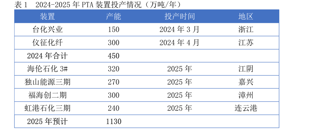 2024年第四季度PTA预计无新增投产,PTA产量供应需要关注检修计划和现有装置的负荷变动。