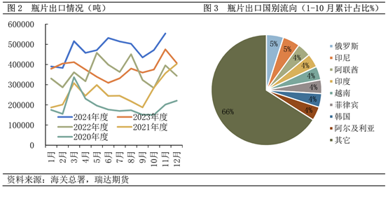 总体来看,2025年瓶片产能扩张增速放缓,供应压力有增无减,企业寻求出口以缓解压力,预计出口依赖度将进一步提升。马来西亚反倾销对瓶片出口产生影响有限,主要由于瓶片出口去向集中度偏低,这种多元化的出口格局也增加了国内瓶片企业抵御外部风险的能力。
