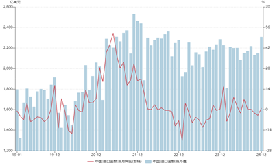 1月13日,海关总署发布数据显示,按美元计价,12月我国外贸进出口5664.2亿美元,增长3.8%。其中,出口3356.3亿美元,同比10.7%,前值6.7%,预期7.3%;进口2307.9亿美元,同比1%,前值-3.9%,预期-1.5%;贸易顺差1048.4亿美元。一、全球制造业景气改善,外需小幅走强。2024年12月全球制造业PMI为49.5%,较11月49.3%进一步回升,连续2个月小幅回涨;其中,欧元区制造业PMI较上月小幅下降,指数在47%以下;美国12月制造业PMI升至49.3%,为3月份以来的最高水平,高于11月份的48.4,强于市场预期;12月中国制造业PMI新出口订单上升至48.3%,为9月以来最高,但仍位于收缩区间。全球景气度有所好转,但从数据可以看出仍有较大改善空间。此外,地缘局势仍不明朗,反复不断,长期来看不利于全球贸易复苏,内需的回暖将成为稳定经济的关键。二、“抢出口”为主导,出口大幅回落。12月出口同比增长10.7%,继上月的大幅下调后,重新回涨至两位数增长,大超预期。除了圣诞来临导致的外需改善这一因素外,“抢出口”现象尤其明显。2025年1月中旬特朗普将正式上任美国总统,因担心特朗普上台后对华商品落地关税使得中国企业抢出口、美国企业抢进口对本期出口数据形成提振。预计该因素在关税正式落地前都将延续。此外,美国12月超预期的就业数据支持了美联储对今年进一步放松货币政策的谨慎立场,从而带动美元走强,提振美国进口,也是一部分原因。从出口区域来看,12月我国对主要贸易国出口均有点不同幅度好转。其中,对东盟出口同比增长18.9%,较上月回升4.0个 百分点;对欧盟出口增长8.8%,比上月反弹1.5个百分点;对美国出口增长15.6%,比上月大幅上行7.6个百分点。此外,对英国、韩国、俄罗斯、新西兰等地区的出口增速由负转正,贸易多元化格局逐渐强化。分产品结构看,劳动密集型产品改善最为明显,“新三样”出口保持稳定。2018年以来我国“新三样”新能源汽车、锂电池、光伏产品等产业快速发展,驱动我国出口规模在化学成品及有关产品、机械及运输设备领域呈现出增长的态势;而劳动密集型产品出口增速进一步上行,纺织及制品增速涨幅最大,家具及其零件增速由负转正,带动整体出口。总体来说,12月我国出口增速在11月基础上提高4.0个百分点,“抢出口”效应带动本月增速超预期。我国对主要发达国际、发展中国家出口增速明显回升,高端制造业出口金额保持增长。部分劳动密集型产品出口增速出现改善,同时以机电、高技术产品为代表的高端制造业产品继续引领出口。接下来,在特朗普宣誓就职前,“抢出口”行为料持续,叠加欧美需求季节性回暖,中国出口增速有望维持韧性。三、进口由负转正,主因节日消费提振。12月我国进口同比增速为1%,由负转正且改善显著。进口增速主要取决于内需,12月我国制造业PMI录得50.1,持续位于扩张区间,叠加春节、元旦节日到来,共同带动消费,为进口回升打下基础。具体来看,本月以集成电路为代表的高技术产品进口增速继续维持高增长,目前正处全球半导体上行周期,韩国对华半导体出口不断增加,推动中国高技术产品进口增速回升。此外干鲜瓜果及坚果的进口边际增长明显,同比较上月涨超过38个百分点,或受春节提前备货因素影响。12月气温再度下降,柴油需求下滑,叠加年底成品油进口配额限制,主营炼厂开工率下滑,原油进口需求出现回落。预计一月份随着一揽子增量政策逐步起效,节假日带来的影响持续,内需改善趋势不变,进口增速料在正区间持续运行。本报告中的信息均来源于公开可获得资料,瑞达期货股份有限公司力求准确可靠,但对这些信息的准确性及完整性不做任何保证,据此投资,责任自负。本报告不构成个人投资建议,客户应考虑本报告中的任何意见或建议是否符合其特定状况。本报告版权仅为我公司所有,未经书面许可,任何机构和个人不得以任何形式翻版、复制和发布。如引用、刊发,需注明出处为瑞达期货股份有限公司研究院,且不得对本报告进行有悖原意的引用、删节和修改。