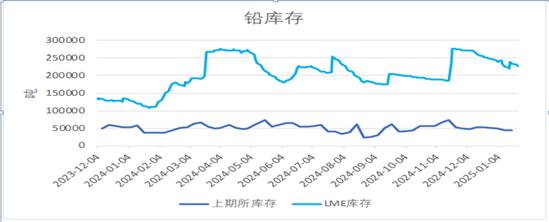 数据概况:截至2025年1月22日,LME铅库存为229425吨,较上月减少25825吨,降幅10.12%;截至2025年1月17日,上期所铅库存为43503吨,较上月减少8532吨,降幅16.4%。海内外库存在1月均有大幅下降,1月底即将进入春节长假,铅产业链上下游放假情况如何,库存是否能延续降势?