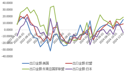 图 12我国对主要经济体出口累计同比(%)